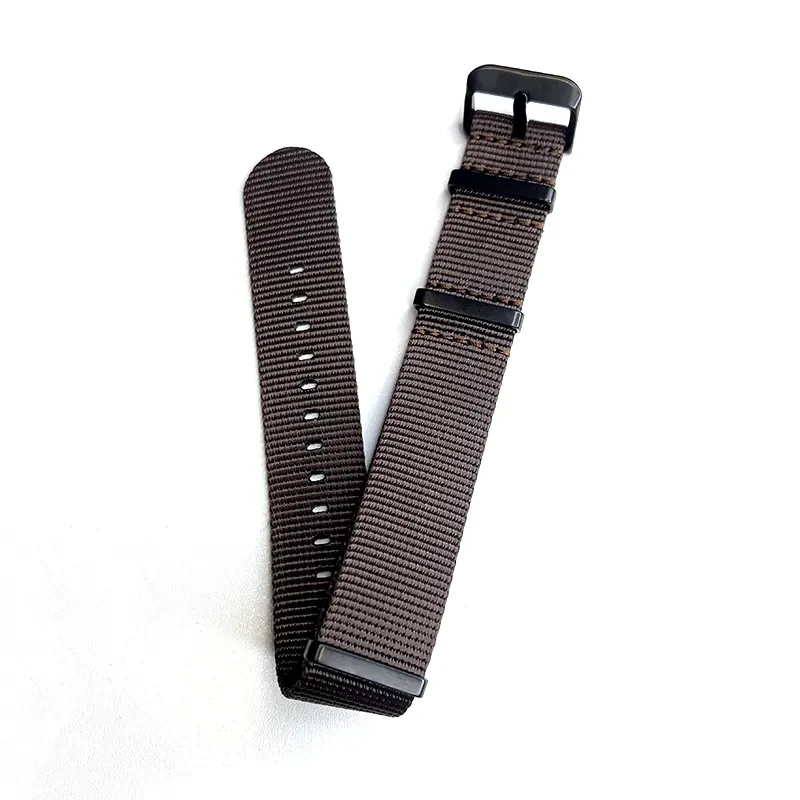 Elevate your watch with a rich, rugged aesthetic. This dark brown NATO strap features durable woven nylon and sleek black PVD-coated hardware for a refined, military-inspired look. Designed for both style and function, it’s the perfect match for field watches, divers, and everyday timepieces.