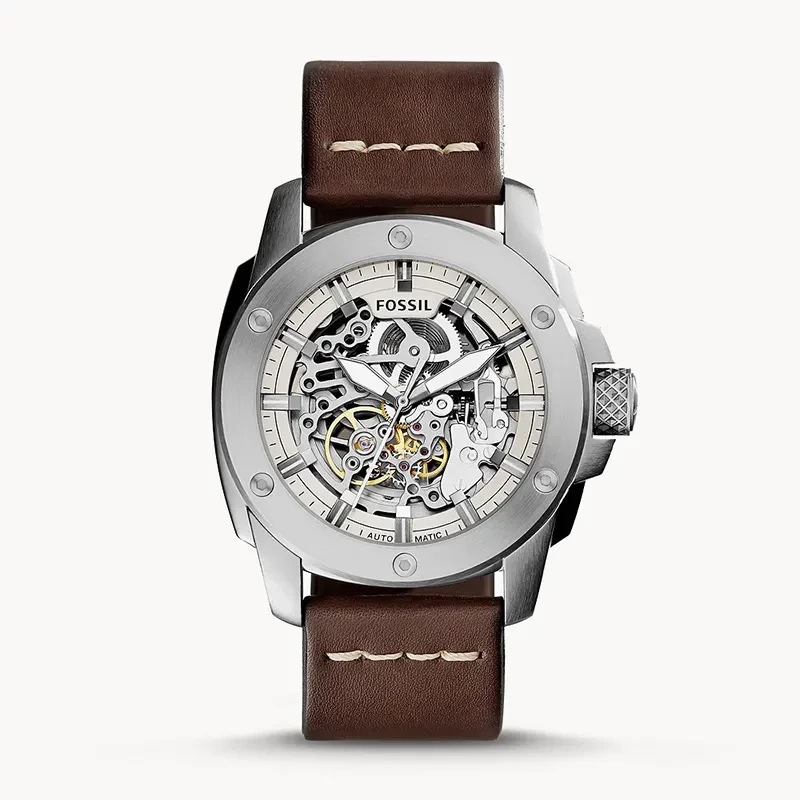 Fossil Modern Machine Automatic Skeleton Dial Brown Leather Men's Watch | ME3083