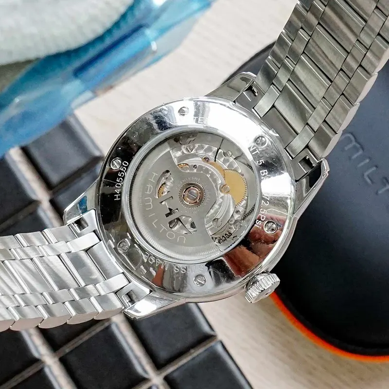The Hamilton American Classic RailRoad Automatic Men’s Watch (Model H40555131) is a refined timepiece that channels vintage rail heritage through a contemporary Swiss-made design. Crafted with a 40mm stainless steel case and a classic round silhouette, it blends traditional elegance with robust engineering. The black dial is contrasted with precise hour markers and a small seconds subdial, while a date display at 3 o’clock enhances everyday functionality. Protected by a scratch-resistant sapphire crystal with inner anti-reflective coating, the dial remains crisp and legible in all lighting conditions. Powered by Hamilton’s H-10 automatic movement—featuring the innovative Nivachron™ balance spring—it delivers exceptional anti-magnetic properties and an impressive 80-hour power reserve. A transparent case back reveals the mechanical artistry inside, appealing to enthusiasts who appreciate watchmaking craftsmanship. With a black stainless steel strap and folding clasp, along with 50-meter water resistance, this watch is well-suited for both business attire and refined casual wear. The RailRoad Automatic stands as a sophisticated tribute to Hamilton's legacy in precision timekeeping. Available at Watch Zone.